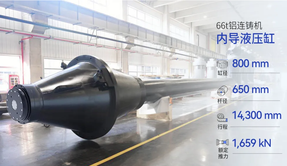 nfclo继全球最大液压缸后,又展现研制硬实力,成功推出了铝连铸机超长行程内导液压缸。该液压缸专为先进的铝棒负压铸造(NPC)系统设计,直径覆盖80mm至380mm,长度可达13米,单次铸造重量高达66吨,为铝合金棒料的高精度铸造带来强劲且高效执行力。
